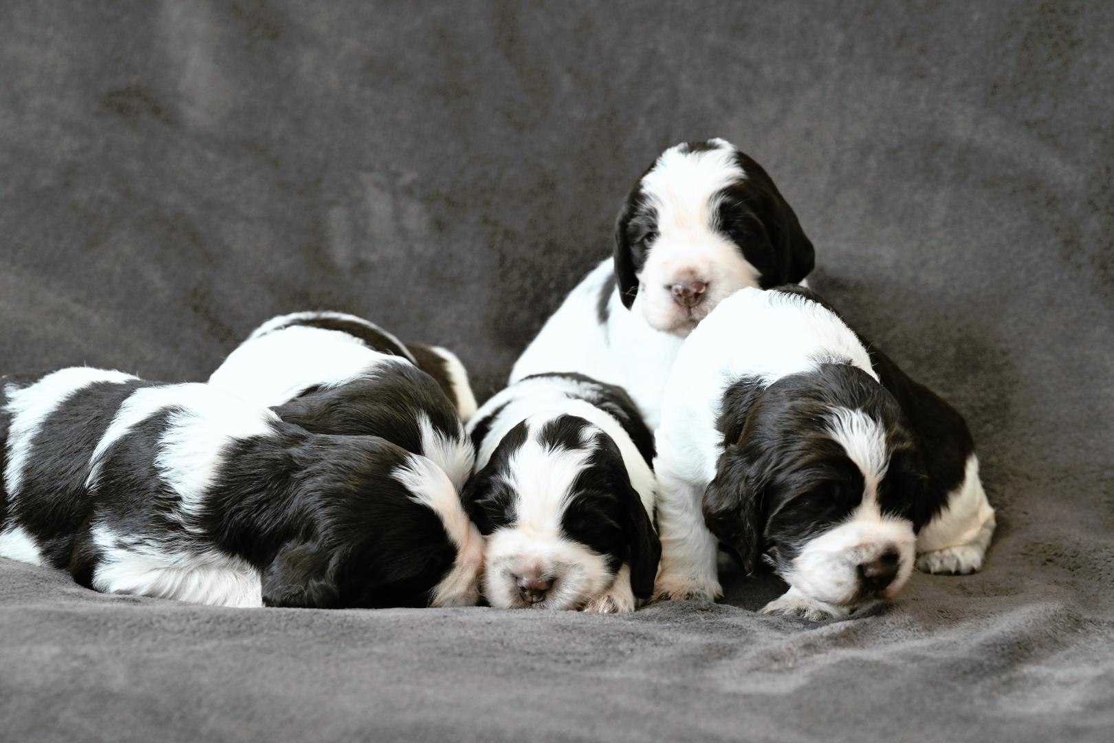 Anglický špringeršpaniel je rodinný psík s úžasnou povahou, temperamentný, oddaný a priateľský. Naše spojenie pochádza z rodičov poľovne vedených, ktorí vynikajú nielen exteriérom, ale aj pracovnými vlohami.